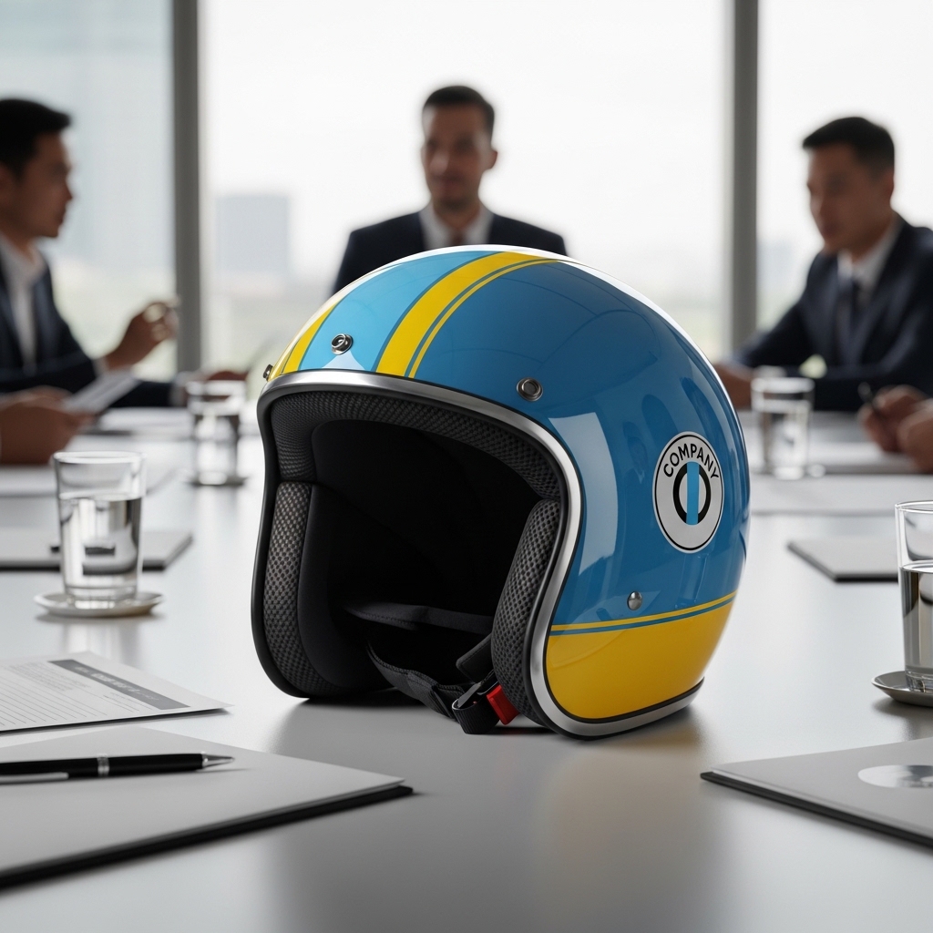 Helm bukan sekadar perlengkapan, tapi bisa menjadi media branding berjalan yang memperkuat identitas perusahaan Anda di mata publik.